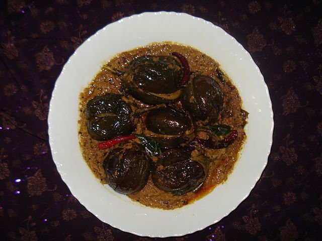 Baghare Baingan dish photo by Miansari66 from Wikimedia Commons licensed under CC BY-SA 4.0